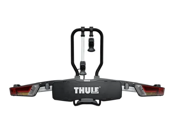The fully foldable, compact, and easy-to-use towbar-mounted bike rack for all types of bikes.\n\n- Fully foldable for convenient mounting, handling and storage\n- High load capacity enabling transport of e-bikes and heavy mountain bikes\n- Easy mounting of bikes through detachable bike arms with lockable Thule AcuTight torque limiter knobs that “click” when optimal torque is reached\n- Large distance between wheel holders enabling transport of sturdy bikes with large wheel bases\n- Adjustable pump buckles with extra-long wheel straps for easy fastening of wheels (up to 4.7" wheels) enabling transport of fat bikes\n- Easy trunk access even with bikes mounted, thanks to smart foot pedal tilt\n- Easy mounting and adjustment of the bike rack before closing the tightening handle thanks to the towbar coupling’s initial stability\n- Ergonomic transport of the bike rack thanks to the integrated carrying handles\n- Pre-assembled, no tools required\n- Lock your bikes to the bike rack and your bike rack to the towbar (locks included)