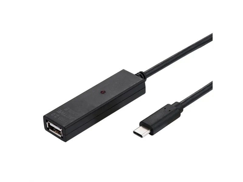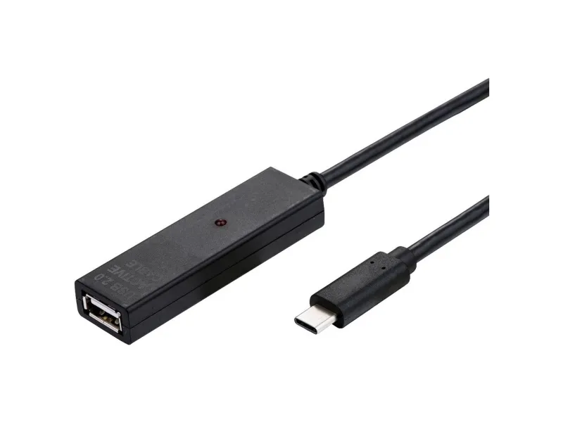 VALUE USB 2.0-forlænger, aktiv, med repeater, A-C, sort, 10 m Aktivt USB 2.0-forlængerkabel med type C-stik og type A-bøsning til forbindelse af for eksempel en MacBooks/Ultrabooks med en ekstern harddisk (SSD/HDD) eller en printer over større afstand. Forlængelse af USB 2.0 til 10 meter kablet opfører sig som en lille 1-ports USB-hub med ledning ned kompatibel med USB 1.1 - automatisk indstilling af den optimale overførselshastighed via interfacet fra PC Hot plug