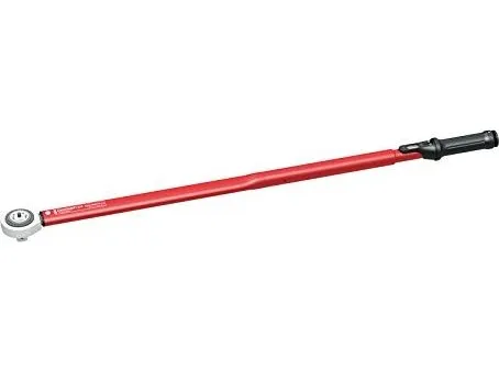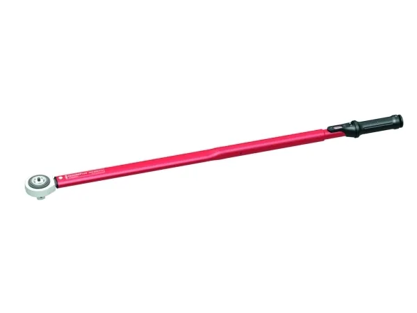 Use: Controlled screw tightening from 5 to 550 N·m Repetition-accurate and precision-like Torque triggering clearly to be heard and felt Clockwise and anti-clockwise tightening from switching over the mushroom head/push-through square Features: Adjustable torque wrench with square drive and integrated ratchet-head function Square drive with ratchet mechanism Torque is set by turning the handle The set value is fixed through the lock at the end of the handle Easy-to-read scale with magnifying glass for N·m, plus 1/10 scale for precision setting Working accuracy: +/- 3 % tolerance of scale set torque Scope of delivery: Torque wrench with test certificate acc. to DIN EN ISO 6789 Operating instructions