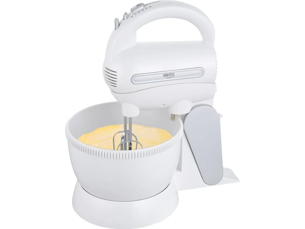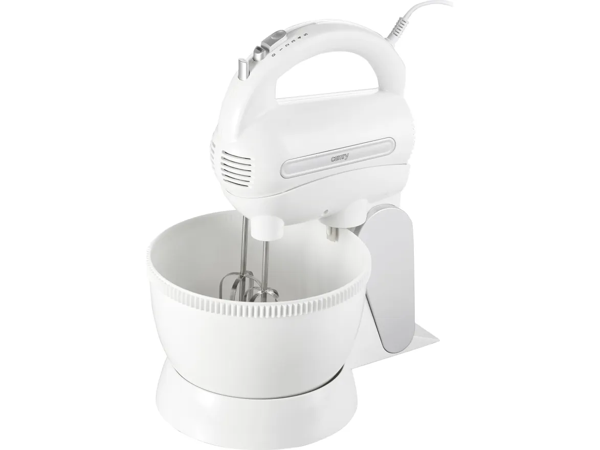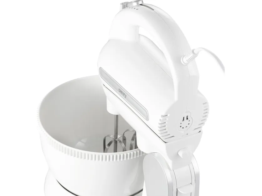 A very handy 600W mixer that is an indispensable tool for anyone who bakes cakes and cookies. It allows to use it at 5 different speeds, depending on what kind of food you prepare. Due to that fact it can be used as well to mix the flour with other ingredients as to whip egg whites. When needed, you can use the TURBO function. The mixer is very practical and reliable and can be utilised for a longer period of time without a risk of it breaking down. The rotating bowl with underground gear system makes it possible to use the mixer without holding it. Therefore, this model is much more user friendly than the standard ones.