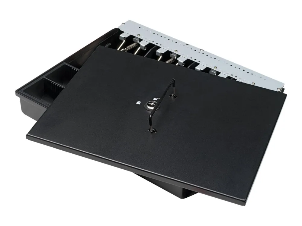MAXIMUM CASH TRAY SECURITY\nProtect the cash inside your 4141 tray during shift changes and while stored in your safe. Simply slide the sturdy steel 4141L lid on and secure the robust lock with the key. Combined with the 4141’s shatterproof PVC construction, the 4141L makes it all but impossible for robbers to access your cash.