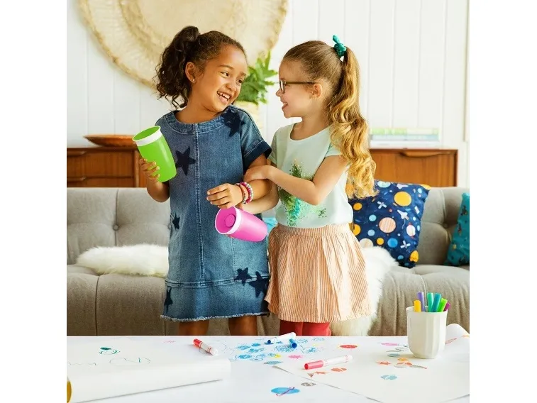 Let’s face it: toddlers are a messy bunch, especially when first navigating sippy cups. Now imagine a world in which drinks didn’t spill at all — not in your diaper bag, not on your nightstand, and not even onto your eager-to-learn child. No, it’s not a miracle, exactly — it’s Munchkin’s Miracle® 360° Cup. The first sippy cup invented with both parents and kids in mind, the Miracle® 360° Cup eliminates messes and supports kids’ dental health all at once. Drinking from anywhere around the rim, like a regular cup, helps support normal muscle development in a child’s mouth. And with no extra spouts, straws or pieces, the Miracle® 360° Cup is easy to use and even easier to clean. We’ll say cheers to that!