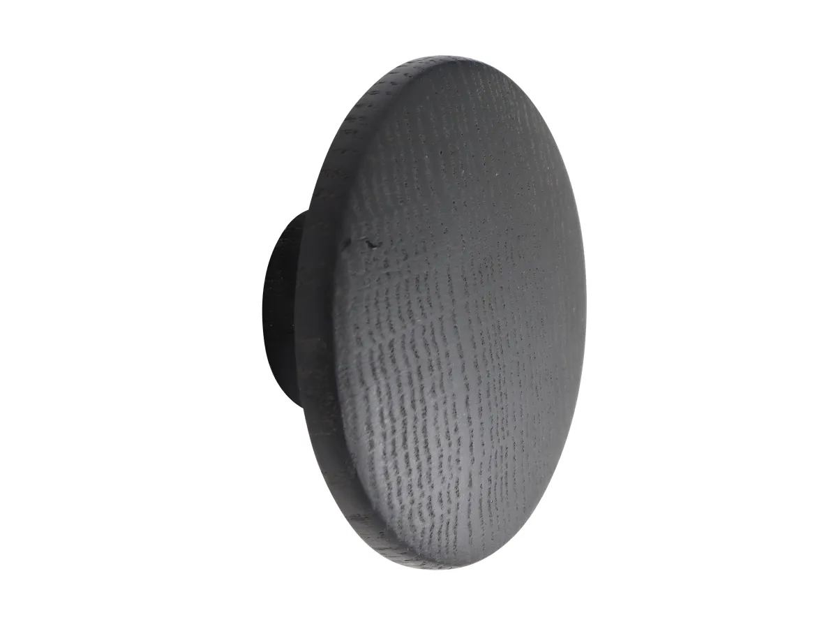 Træknop med M6-bøsning Mål: Ø 75 mm Antal: 1 stk. Anvendelse: knag eller møbelknop Materiale: egetræ Farve: sort FSC NC-COC-057905