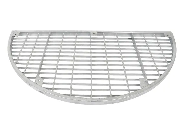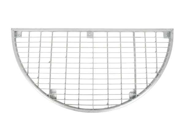 Bredde: 40 cm Længde: 80 cm Højde: 2,5 cm Ramme: 12 mm Form: halvrund Netmaskerne er 2,5 x 6 cm Inkl. 6 stk. stilleben med 6M gevind og sort gummi fod Max. højde 5 cm. Ben ligger løse i pose Materiale: galvaniseret stål