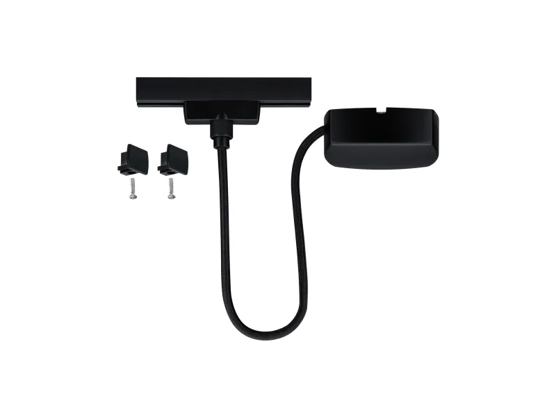 This black power infeed can be used at any point on the system. Thanks to the 1-metre cable, the rail system can also be positioned next to the power outlet.