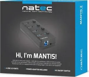 HUB USB NATEC MANTIS 2 is the perfect way to increase the number of USB ports available in laptops and ultra-books, giving the user more convenience and freedom. It has been equipped with 4 USB 3.0 ports ensuring data transfer rates up to 5 Gb/s.