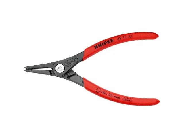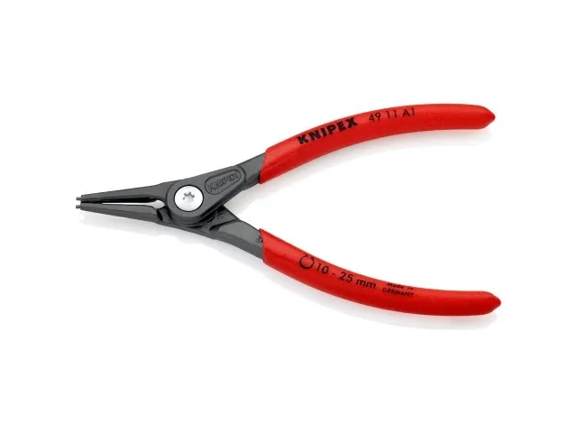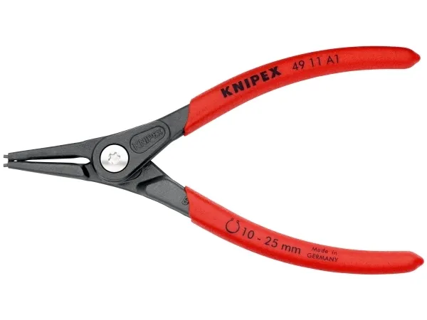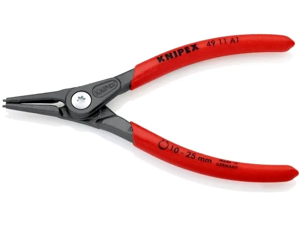 49 11 A1 SB Præcisions-låseringstang meget belastbar ved konstant brug: op til 10 gange så lang standtid som let drejede spidser. Med indsatte spidser for sikkert arbejde. med beskyttelse mod overudspiling. Store holdeflader på spidserne: ingen vridning af ringene, let montage. Skruet led: tangen går præcist og uden spillerum. åbningsfjeder ligger i leddet, beskyttet og kan ikke gå tabt. Skridsikkert kunststof på grebene. Slankt tanghoved for optimal adgang til arbejdsemnet. DIN 5254 A; lige spidser.