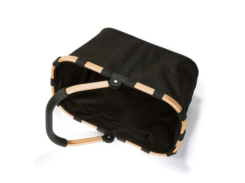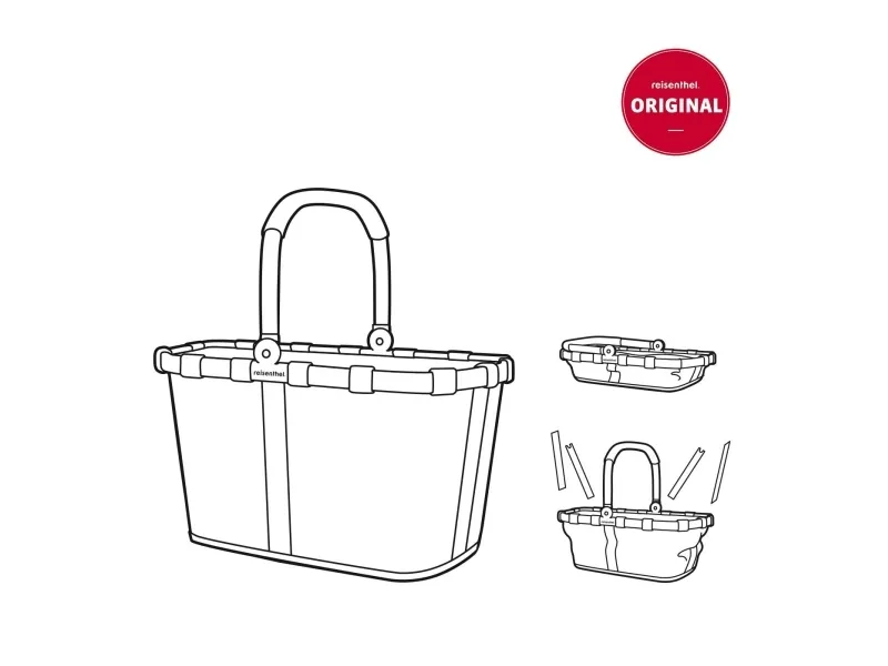 Icons and originals: Unique in form and function – that's what the carrybag has proven itself to be since 2003. Whether out shopping, going to the market or on a picnic, the often copied shopping basket from reisenthel is an absolute classic.\n\n- The original: highly coveted, internationally known and already a classic today!\n- Sturdy aluminium frame\n- Collapsible soft rubber handle\n- 1 zip pocket inside\n- Rigid bottom with base feet\n- Folds flat if needed\n- Material: premium-quality polyester, water-repellent