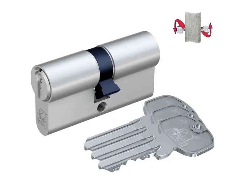 Profil-Knaufzylinder Messing, mat forniklet Den eksklusive AS-knopcylinder serie fra BASI. Den robuste cylinder med knop leveres inklusiv 3 nøgler. Profilcylinderen er udstyret med et selvlukkende system. Det betyder, at nøglen kan bruges til flere cylinderlåse. Uanset om det er til husdøre, ekstralåse, havedåger, kælderdør eller hængelåse - når du vælger et ensartet system, behøver du i fremtiden kun en nøgle til åbning af døre. Vær derfor opmærksom på nummeret på jævnlukning, når du køber. Desuden er der altid mulighed for at lave erstatningsnøgler hos den regionale nøgletjeneste. As-knaug-cylinder kan anvendes som ideel lås til et husindgangsområde. Den egner sig som lås til husdøre eller indgangsdøre. Med sin 1-sidede drejehjul kan døren til enhver tid åbnes og lukkes indefra uden nøgle. Den massive cylinder af mat forniklet messing kommer desuden med en udboringsbeskyttelse, som forhindrer/vanskeliggør opboring af mulige indbrudstyve. Ved BASI-cylinderens fremstilling er der lagt vægt på højeste kvalitet. Fremstilling og kontrol sker i henhold til din-norm 18252:2006-12.