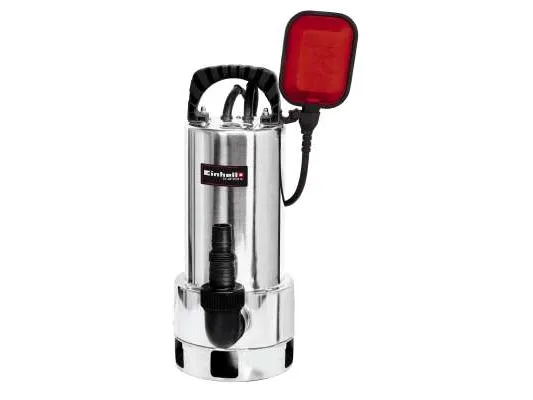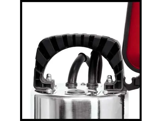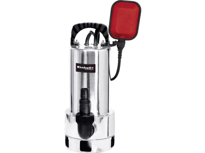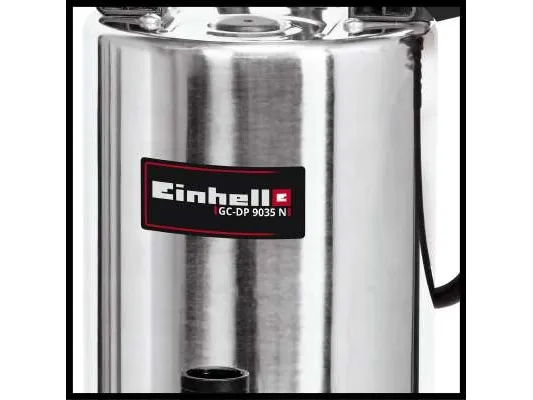 Spildevandspumpe GC-DP 9035 N Bæregreb · trinløs højdejusterbar svømmekontakt · førsteklasses glideringstætning · rustfrit stål-pumpehus · tilslutning til 25/38 mm-slanger samt 33,3 mm (1") udvendigt gevind · 90° vinkel 47,8 mm (1 1/2") AG" Spildevandspumpe GC-DP 9035 N er et robust, kraftigt og pålideligt værktøj,der givder den bedste ydelse ved udpumpning af damme, udgravninger, oversvømmede kældere kælderrum og meget mere. Med et effektforbrug på 900 W klarer den kraftige pumpe hver time op til 17 18000 liter snavset vand. Kabinettet er fremstillet af højkvalitets rustfrit stål, hvilket sørger for en lang levetid. Den førsteklasses glideringstætning beskytter den kraftige motor og sørger for, at den stort set er vedligeholdelsesfri. Den trinløst regulerbare float switch giver valget mellem konstant drift og et forudvalgt tænd- og slukniveau. For at give fleksible tilslutningsmuligheder er den udstyret med en universaltilslutning og en 90°-vinkel. Desuden er den udstyret med et håndtag til nem transport.