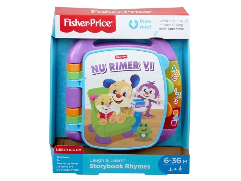 Åpne en verden av spennende og morsom læring for barnet med musikkboken Laugh & Learn® Fortelling på rim. Når barnet blar i boken, aktiveres morsomme barnesanger som "Kakemann" og "Ro, ro, ro din båt" akkompagnert av fargerike tegninger med Valpen og Søs. Og når dere sammen danser og beveger dere til musikken, lærer barnet å telle, sine første ord, bokstaver, tall, om former og mer. Med det praktiske bærehåndtaket kan du ta med Fortelling på rim når du skal ut på tur med det lille nurket ditt. Tidlig læring – lekende lett. Tall og bokstaver: Når barnet trykker på ABC- og 123-knappene, hører det bokstaver og tall som passer til hver side, noe som hjelper barnet med å utvikle lesegleden. Farger og former: Når barnet trykker på knappen med former og farger, lyser den opp, og barnet hører uttrykk som forteller om de forskjellige fargene og formene det ser.Med babyens favorittvenner fra Laugh & Learn®, inkludert Valpen og Søs6 klassiske barneregler som babyen kan høreLær telling, første ord, bokstaver, tall, former og mer!3 lysende knapper for bokstaver, tall og formerSider som er lett å bla i, og som bidrar til å utvikle motoriske ferdigheterEt flott håndtak gjør det enkelt å ta med på farten