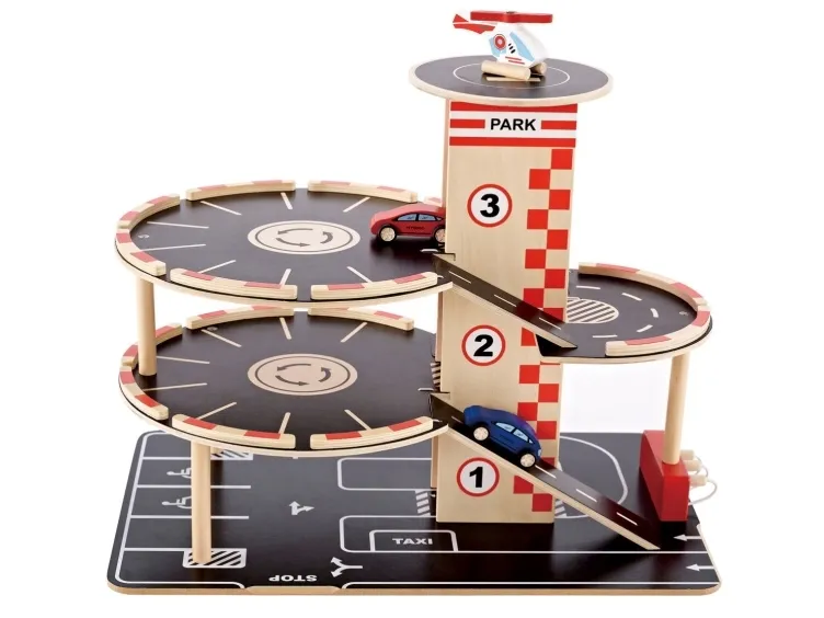 Der er masser af parkeringspladser til biler og helikoptere i denne fire etagers garage og helikopterlandingsplads.