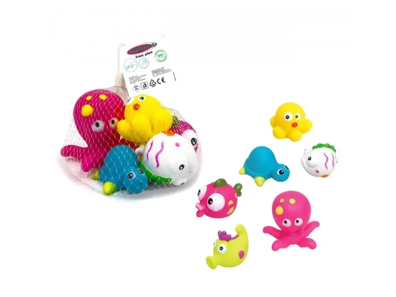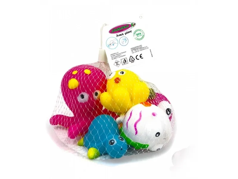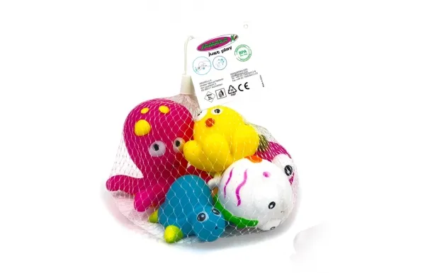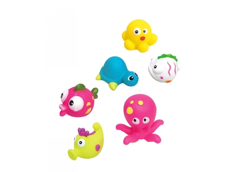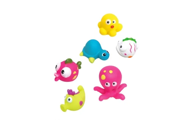 - Colourful and funny bathtub toys - Floatable - Squeaky noises - Spraying water under pressure - Promotes motor skills