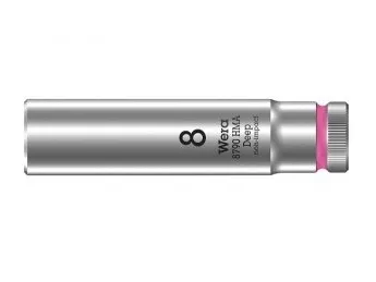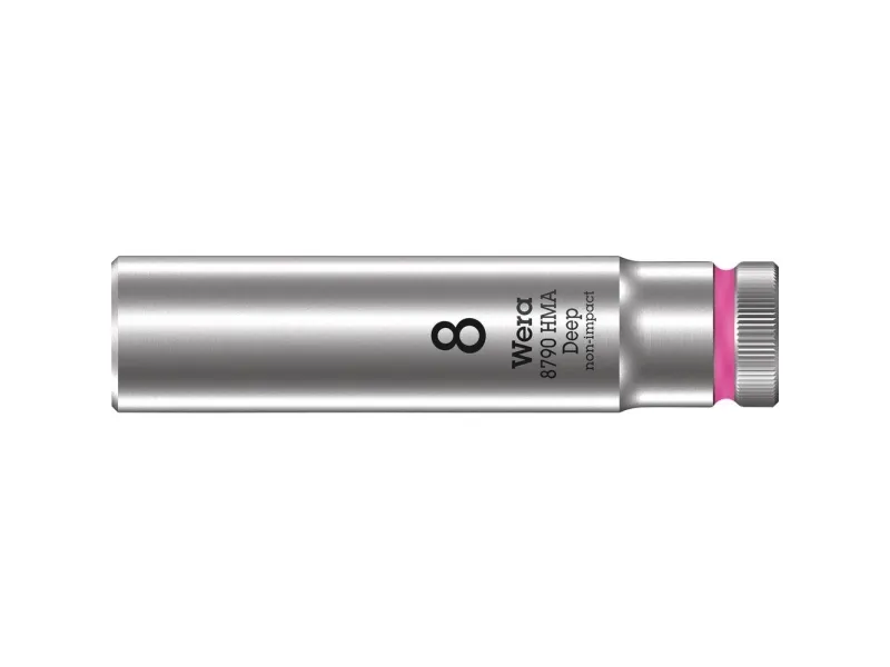 8790 HMA Deep topnøgleindsats med 1/4-drev Lange topnøgler til dybtliggende forskruninger og delvist også ved udragende gevindstænger i snævre områder Sekskantsprofil muliggør præcis skruning med høj kraftoverførsel og skåner derved profilen Med værktøjsfinderen Take it easy: farvemærkning efter størrelser. Rifling på bageste ende til høj gribeevne ved manuel betjening Til hånd- og maskindrift (non-impact), med kugle fange-rille Lang 1/4 hånd- og maskiner topnøgleindsats (ISO 2725-del 3) med kugle fange rille; til udvendig sekskant-skruer og -møtrikker. Til manuel drift (non-impact), også ved dybtliggende forskruninger og udragende gevindstænger. Med Take it easy værktøjsfinder med farvemærkning efter størrelser - til enkel og hurtig lokalisering af det nødvendige værktøj. Med et godt greb for nem adgang, selv med fedtede hænder. Med sekskant-profil. Det sekskantsprofil muliggør overførsel af høje kræfter og belaster kanter af skruemøtrik eller boltens hoved mindre end en tolvkant profil. Fint fortandet knagen gør derudover med din lille returdrejevinkel anvendelse af Tolvkant profil - selv på trange pladsforhold overflødig.