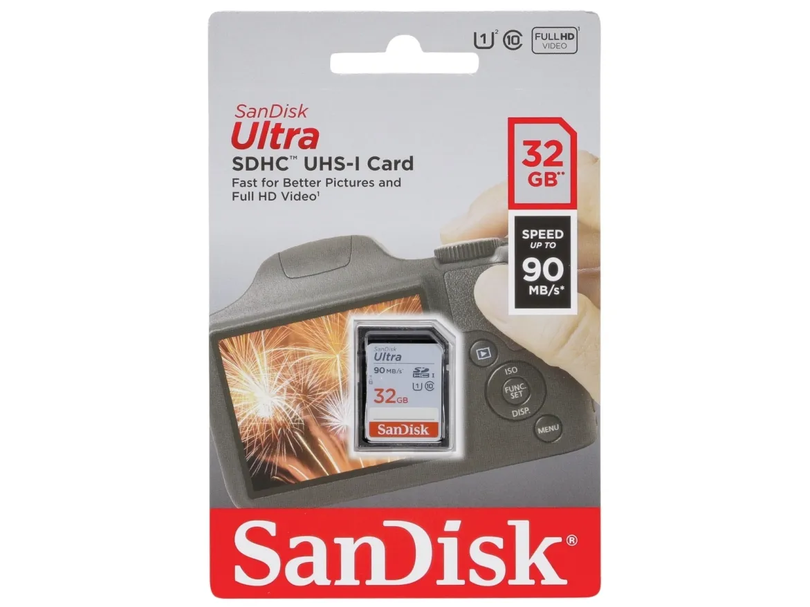 Store lots of photos and Full HD videos - and transfer them quickly to your computer - using SanDisk Ultra SDHC UHS-I Memory Cards. Great for compact-to-midrange point-and-shoot digital cameras and camcorders, these memory cards offer read speeds of up to 80 MB/s and are twice as fast as ordinary SDHC cards, allowing you to take pictures and transfer files quickly. SanDisk Ultra SDHC UHS-I Memory Cards come with up to 128 GB of storage and are resistant to water, extreme temperatures, x-rays, and shocks. A label allows you to note what's on the card for easy identification.