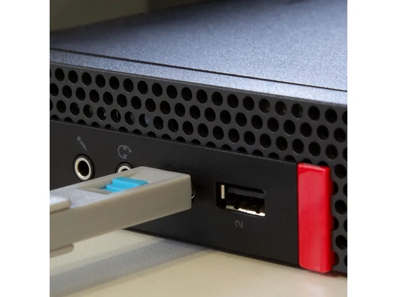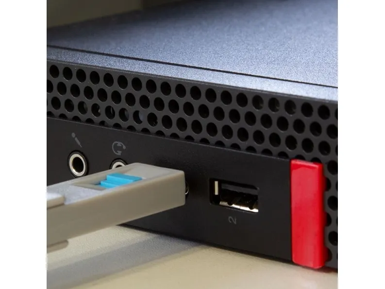 The simple and effective USB lock for blocking access to a computer USB-C port! With this neat little device, system administrators can physically prevent users from connecting pen drives, MP3 players and other USB mass storage devices to their computers to copy data or insert viruses.