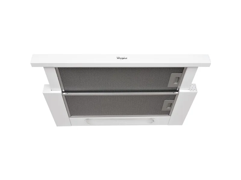 Whirlpool AKR 749/1 WH. Maximum extraction power: 304 m³/h, Type of extraction: Ducted/Recirculating, Fluid dynamic efficiency class: E. Type: Semi built-in (pull out), Product colour: White, Housing material: Stainless steel. Grease filter type: Aluminium, Number of filters: 2 pc(s). Bulb power: 3 W, Number of bulbs: 2 bulb(s), Bulb type: LED. Annual energy consumption: 61.6 kWh, Connected load: 121 W, Motor power: 156 W