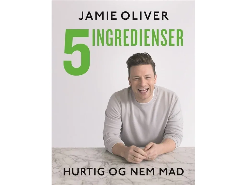 Keep it simple! Man kan sagtens lave mad super god og velsmagende mad med blot 5 ingredienser. I Jamie Olivers nye kogebog handler det om kvalitet frem for kvantitet og om at lave sund og afbalanceret mad hurtigt og nemt. Det er en no nonsense kogebog – der er ingen små fortællinger om den enkelte ret, der er ikke lange afsnit om ernæring. Billede af de 5 ingredienser + billede af den færdige ret + beskrivelse af fremgangsmåden. Skema angiver indhold af kalorier, fedt, mættet fedt, proteiner, kulhydrater, sukker og fibre. Så bliver det ikke nemmere!