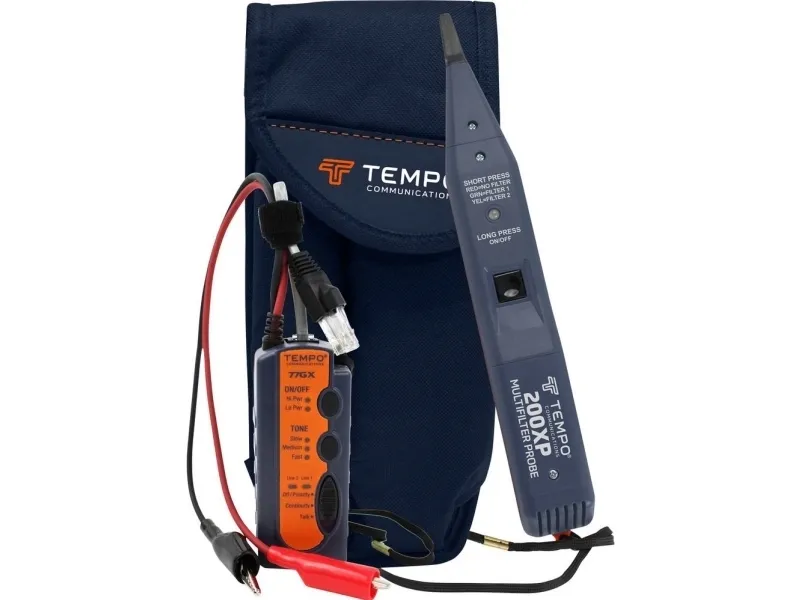 Ledningstestsæt 811K Høj nøjagtighed i kraft af kvartsstyret DSP (Digital Signal Processor) · Justerbar digital signalfiltrering for at øge ydeevnen · Indstilling af sonden ved hjælp af en enkelt trykknap · Frakobling af netbrummen med tryk på en knap · Tilslutning til testtelefon · Indstilleligt udgangsniveau · Servicedisplay til to ledninger · Kortslutningssikring · Tonegenerator med modulhanstik og -hunstik eller krokodillenæb · Tre forskellige tonemønstre kan vælges · Batterisparekobling: sonde 5 min., generator 4 timer · Visning af lav batteristand · ID577™-kompatibel · Også kompatibel med ældre instrumenter. Dette effektive testsæt gør det muligt at finde ledertråde – selv under svære betingelser såsom i nærheden af kraftige støjkilder. Testsonden 200XP og tonegeneratoren 77GX fungerer også særdeles effektivt ved stærk netbrummen og digital krydstale. Eksperten ved svære betingelser