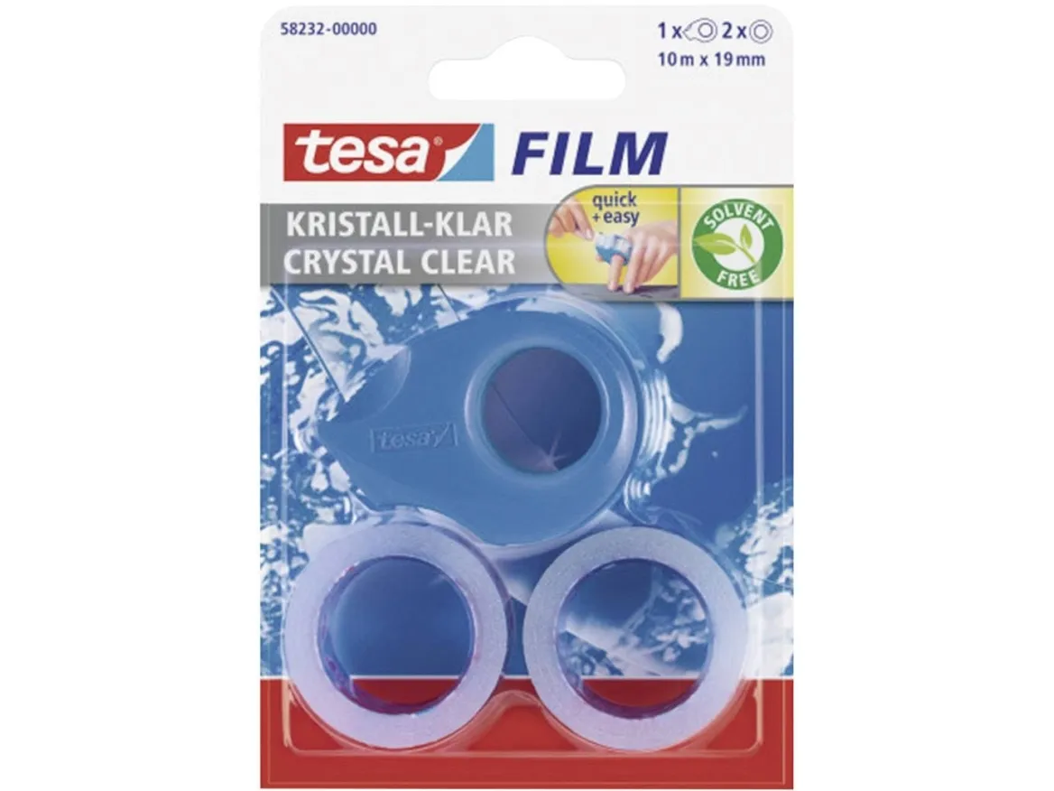 The tesafilm Mini Dispenser is a handy dispenser to easily attach a strip of tesafilm® at precisely the length needed. This handheld tape dispenser is ergonomically designed and can simply be stuck on a finger, leaving you with free hands to easily apply the adhesive tape. A metal blade takes care of precise cutting of the tape. A lateral roll protection prevents the self-adhesive tape from getting dirty or damaged. One roll with 10 m of 19 mm wide tesafilm® crystal clear is already inserted so you can start right away.