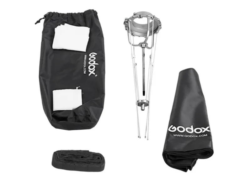 The GODOX SB-GUS series softbox not only saves valuable time, but also makes it easier to work on the set. This is possible thanks to the frame, which uses the principle of the umbrella. The plating fabric is stretched and held in tension by a structure whose rods are made of elastic steel.If necessary, the softbox can be folded and stored in the case in a few seconds.The plating is made of a rip-stop nylon fabric, softboxes are very resistant to mechanical damage, and at the same time very light. The interior is finished with a silver screen that evenly distributes the light on the diffusers. In addition to the main scattering layer, the softbox is equipped with an additional internal diffuser, made of white material with a high coefficient of light scattering. In the front part there is a collar used to mount the honeycomb (included).Softbox is equipped with a Bowens mounting ring.It can be used with products from other brands using the same mounting.Godox SB-USW80120. Product colour: Black, Material: Nylon. Width: 80 mm, Depth: 120 mm
