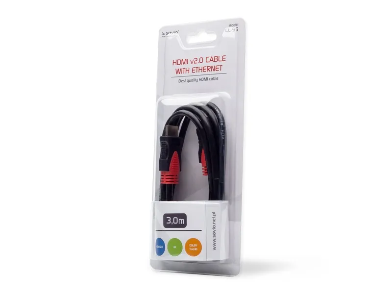 HDMI (M) v2.0-kabel, 3m, kobber, svart, gullspisser, ethernet/3D, CL-96