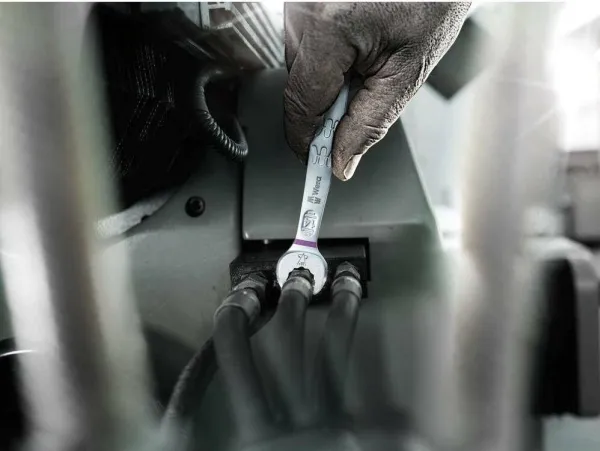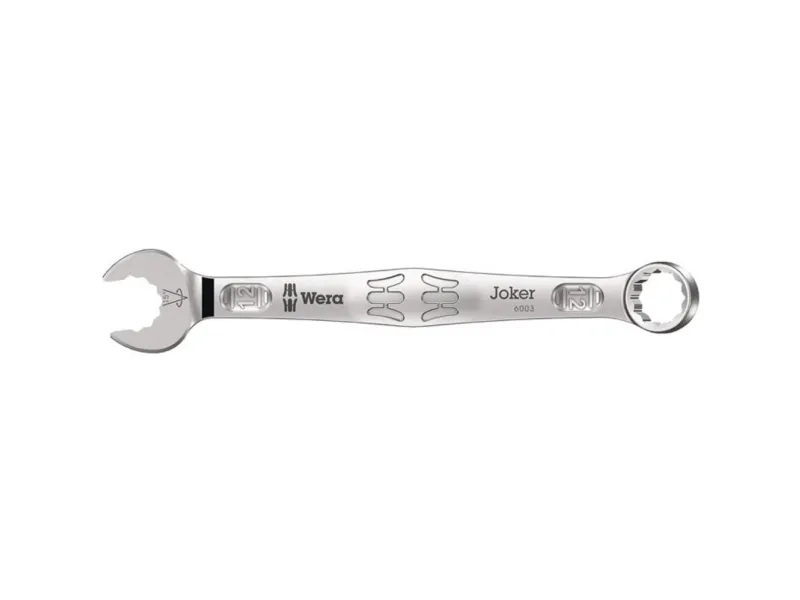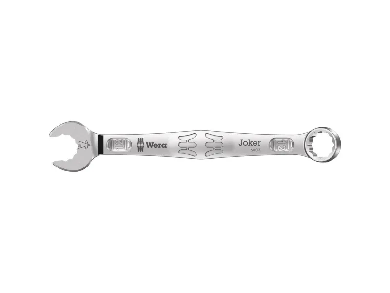 As the installation space becomes increasingly tight during screwdriving, it remains necessary that tools enable users to work successfully. Narrow spaces require additional placement points of the tool. Can spanners be modified so that the placement possibilities of the tool increase? The combination of the 7.5° pivoted mouth and the double hexagon geometry doubles the placement points. A repeated 180° turn of the wrench around the longitudinal axis during screwdriving provides four placement possibilities, and bolts or screw heads can be "taken" every 15°. The Joker 6003 with its smart mouth geometry significantly expands the range of uses in confined spaces. The Joker 6003 will automatically find the respective placement point after every turn. The slim yet robust ring side is angled by 15° to the tool axis. The high-quality surface treatment achieves a high and long-lasting corrosion protection. With Take it easy tool finder: colour coding by size.