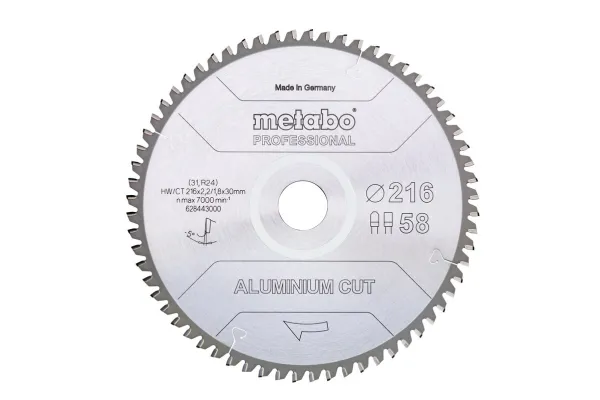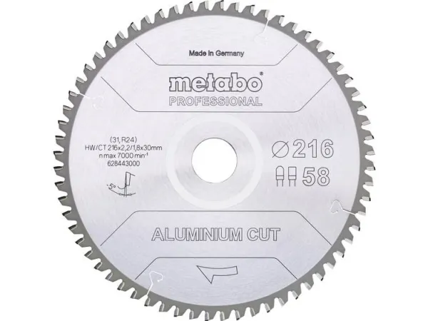 Metabo 628443000. Suitable for materials: Aluminium, Blade diameter: 21.6 cm, Bore size: 3 cm. Quantity per pack: 1 pc(s)