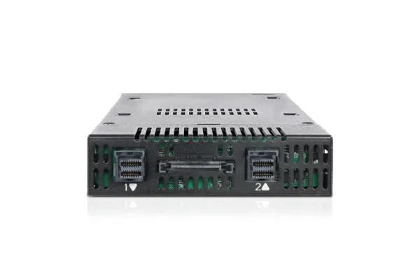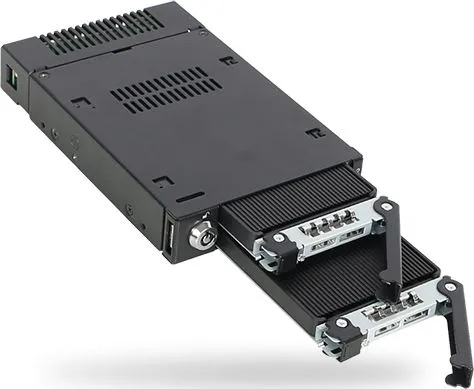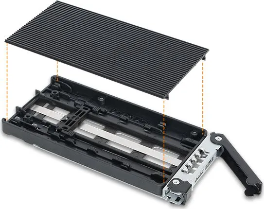 Introducing ToughArmor MB834M2K-B, the world's first ruggedized M.2 PCIe NVMe SSD tool-less removable rack. Your M.2 NVMe SSD no longer requires to be installed on a motherboard or a riser card with a tiny screw, but it can now be installed and accessed from the front of your computer without any tools! The ToughArmor MB834M2K-B comes with a patent-pending tool-less M.2 drive installation design which will alleviate the pain that many users experience when installing M.2 drives and offer easy drive maintenance and system upgrading. The ToughArmor MB834M2K-B supports blazing-fast PCIe x4 transfer speed up to 32Gb/s via MiniSAS HD (SFF-8643) and accepts all standard M.2 drives lengths from 30mm to 110mm (2230, 2242, 2260, 2280, 22110). In addition, while working together with numbers of ventilation holes around the enclosure, each drive tray is equipped with a high efficiency aluminum heat sink to ensure all the M.2 NVMe SSDs remains within their optimal temperature even when it is under full load.