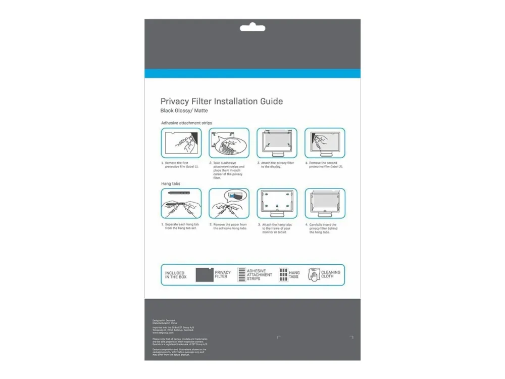 eSTUFF - Personvernfilter for skjerm - 2-veis - avtakbar - klebemiddel - 34" bredde - svart