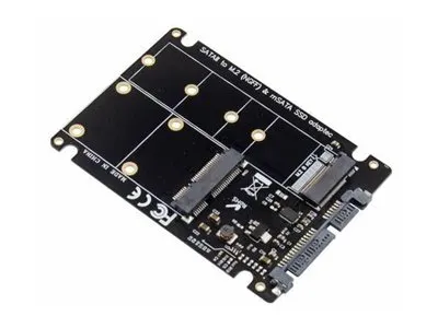 This SATA to M.2 or mSATA Adapter is a 2.5-inch multi-function card. Which can support one M.2 Key B SATA protocol SSD, or one mSATA SSD .It compliant with Serial ATA Specification 3.0 ,and transmission speed up to 6Gbps,it can be used in laptops, desktop computer ,mini computers and other devices.