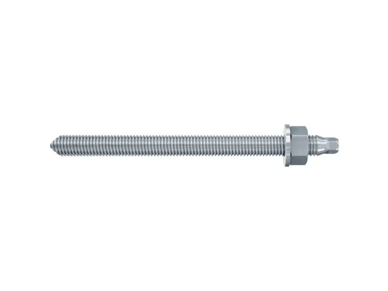 Funktionsmetode: På grund af de skrå vægge egner ankerstangen RG M sig især til anvendelse i forbindelse med reaktionspatroner. Ankerstangen RG M sættes med en borehammer og det tilhørende sætteværktøj drejende-slag. Ved indstillingsprocessen ødelægger taghældningen på RG M patronen, blander den og aktiverer mørtel. Anvendelse med injektionsmørtel er også mulig. Herved anvendes ankerstangen manuelt under let drejebevægelse til borehullet under boringen.