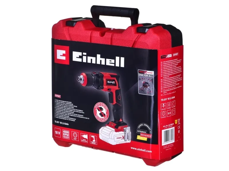 Einhell TE-DY 18 Li-Solo, Elektrisk skrutrekker, Pistolhåndtak, Sort, Rød, 4000 RPM, Batteri, 18 V - SOLO
