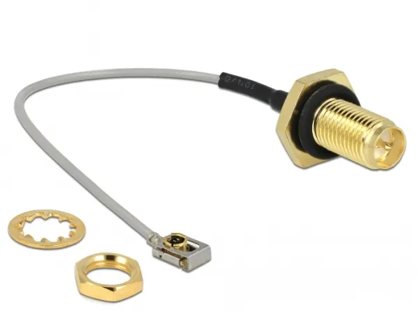 Delock - Antennekabel - RP-SMA hunn skott til MHF I LK hann - 10 cm - koaksial - grå, svart