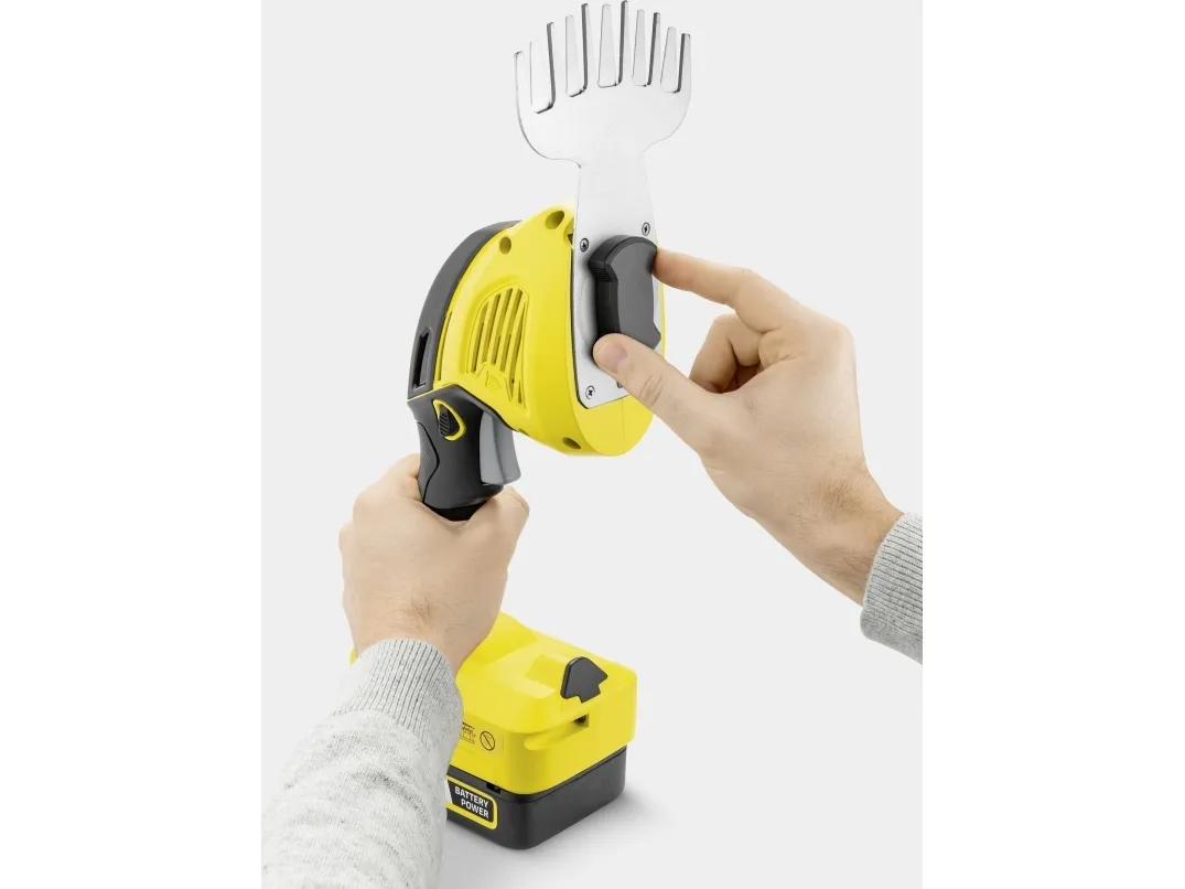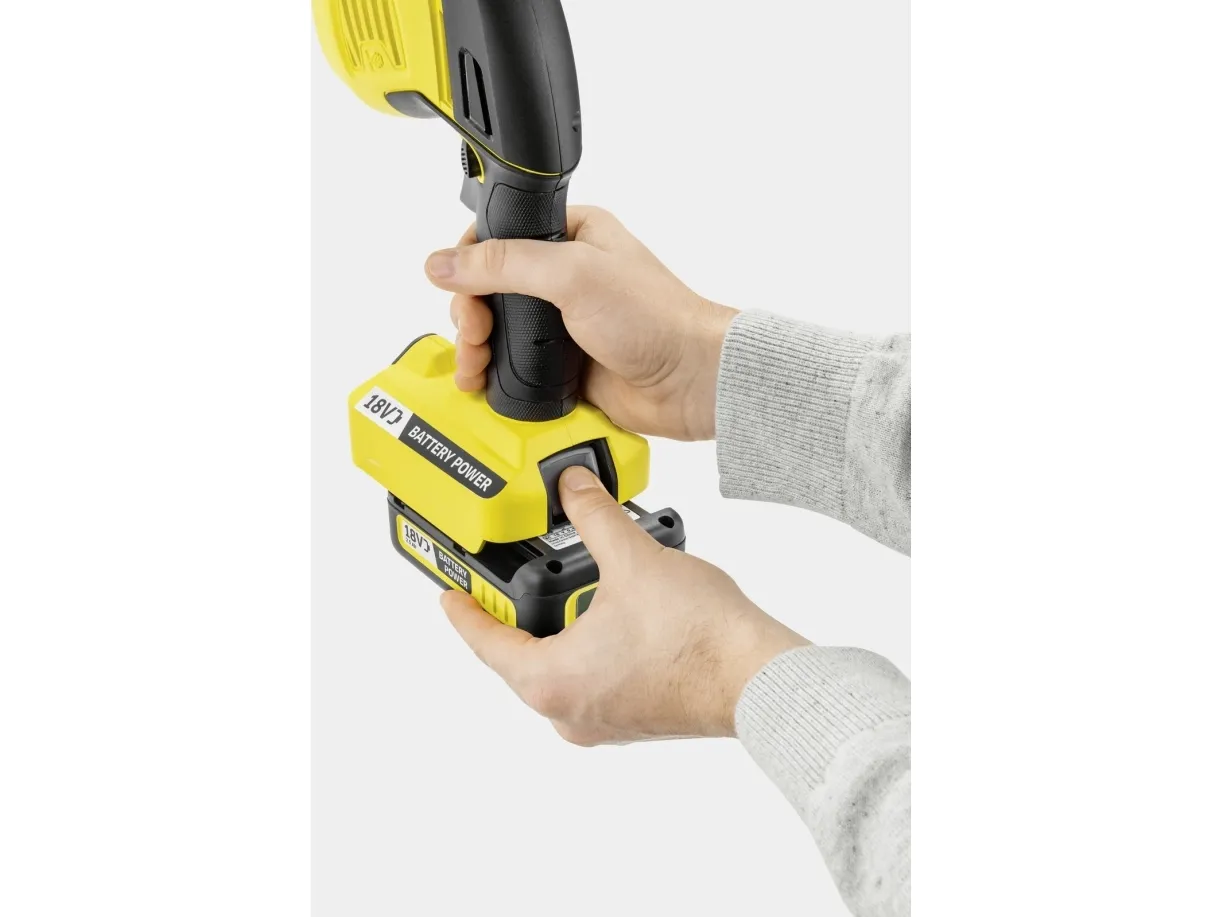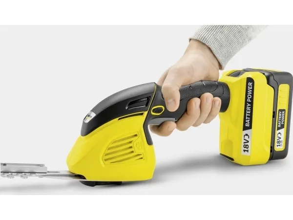 Hageelskere fryder seg over rette linjer og klare former, som viser at hagen stelles med omtanke. Men når man beveger seg langs steiner, gangveier eller uteplasser, kan en gressklipper aldri gi helt rene og rette kanter. Det er her den kraftige batteridrevne gress- og busktrimmer GSH 18-20 Battery kommer til sin rett. Det 12 cm brede bladet trimmer plenkanter med den største presisjon. Samtidig gjør den lave vekten og det kraftige batteriet den perfekt til arbeid over lengre tid uten stopp og til effektiv klipping. Og den kan gjøre mer enn det: Den kan også brukes til å stelle og forme busker, selvsagt under forutsetning at riktig blad er montert. Det 20 cm lange buskbladet, med dobbeltsidige, diamantslipte skjærekanter, festes raskt med innskruingssystemet uten behov for verktøy. Etter at du har fått skikk på ujevne plenkanter og utstikkende grener, kan du henge opp det allsidige 2-i-1-redskapet i boden eller garasjen ved hjelp av det integrerte opphengshullet i bladbeskyttelsen. Plassbesparende oppbevaring av redskapet til neste gang det trengs.