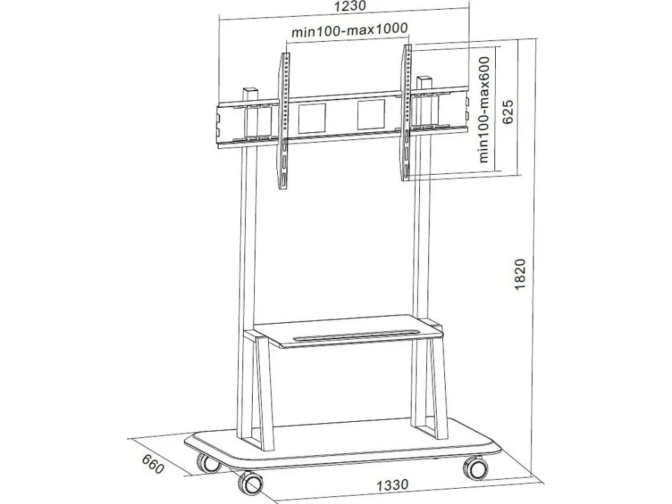 Techly ICA-TR31. Maximum weight capacity: 150 kg, Minimum screen size: 139.7 cm (55"), Maximum screen size: 3.05 m (120"), Maximum VESA mount: 1200 x 600 mm. Product colour: Black