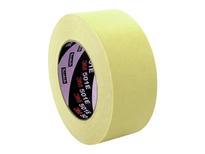 3M™ 501E crepetape, 36 mm x 50 m. Papirbærer med gummiharpiks lim · Specialimprægneret · Smidigt · Håndrivningbar · Til følsomme lakeringsarbejder specielt i biler op til 160 °C. · Egnet til alle lakeringssystemer · Egnet til ovnovnlys-, IR- og varmelamper systemer. 3M™ 501E - de mest krævende arbejder på temperaturer op til 160 °C.