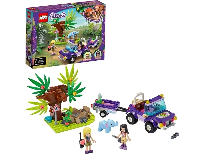 Let kids play the hero as they race to rescue a baby elephant from the swamp! Baby Elephant Jungle Rescue (41421) is packed with features to inspire imaginative play. Working as a team with the LEGO Friends girls, kids can get lost in hours of adventure play. LEGO Friends is proud to support the work of National Geographic Explorers.