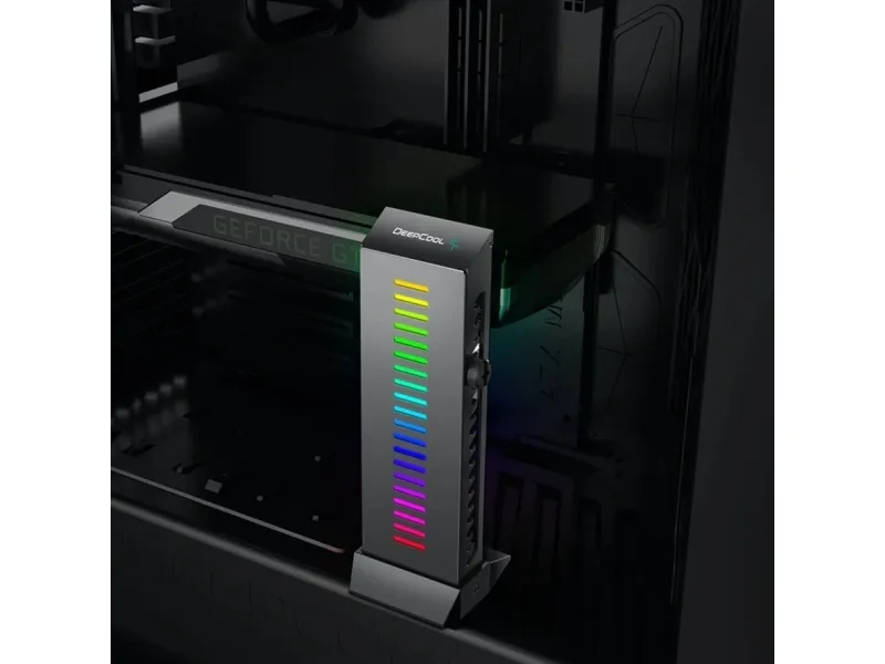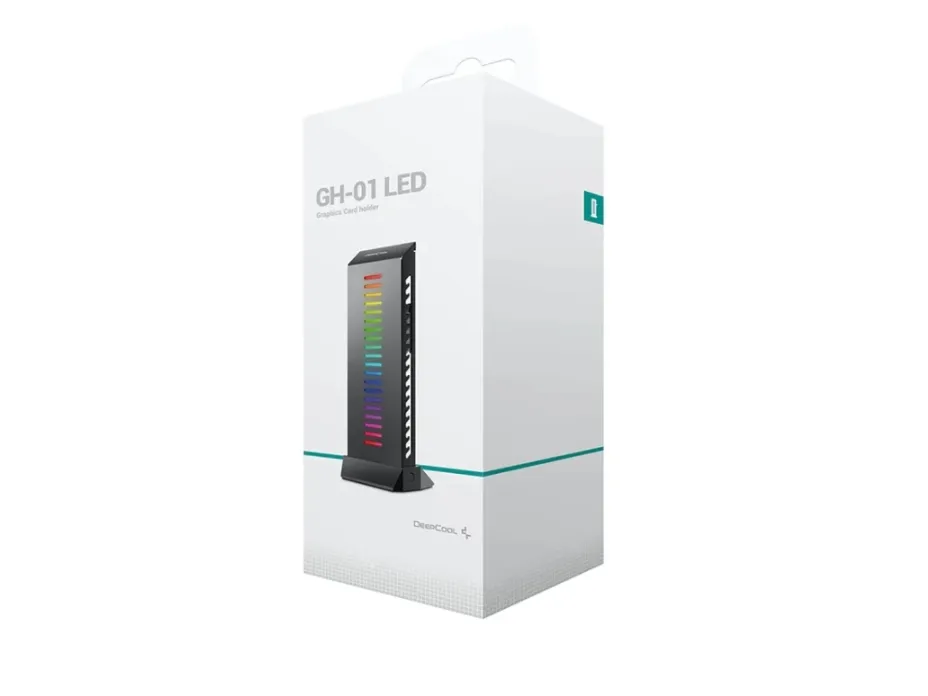 Supported With or Without a Power Supply Shield The GH-01 LED can not only support cases with power supply shield, but also support cases without power supply shield by installing STAND For GH-01(sold separately).DeepCool DP-GCH01-GH01-LED. Compatible chassis type: Universal, Type: Graphic card holder, Product colour: Black. Input voltage: 5 V, Power consumption (max): 1.2 W. Cable length: 0.6 m, Width: 526 mm, Depth: 606 mm. Quantity per pack: 1 pc(s), Package width: 560 mm, Package depth: 740 mm