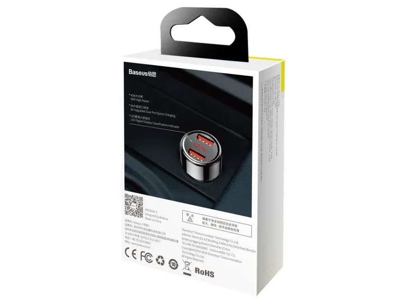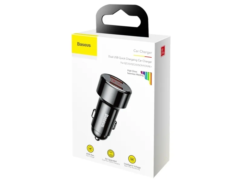 Baseus CCMLC20A-01. Charger type: Auto, Power source type: USB, Charger compatibility: Smartphone. Input voltage: 12 - 24 V, Maximum output voltage: 20 V. Fast charging. Product colour: Black