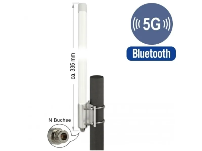 This waterproof antenna by Delock allows the usage of different 5G and LTE bands outdoors. It is completely compatible with GSM, UMTS, 5G LTE, ZigBee, Z-Wave, NB-IoT, WLAN 2.4 GHz, Bluetooth, ISM, DECT and LoRa.