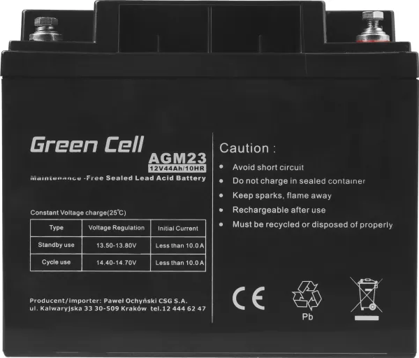 Green Cell AGM accumulator is made from high-quality materials. The device is perfect to be used heavily, but also to be used from time to time. The accumulator is based on AGM technology, which means that the electrolyte is absorbed by a fiberglass separator, preventing its leakage. This way the device can work in different positions, not just vertically. This is a perfect and much safer alternative for lead-acid accumulators.