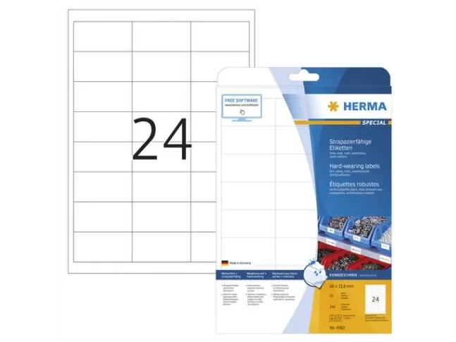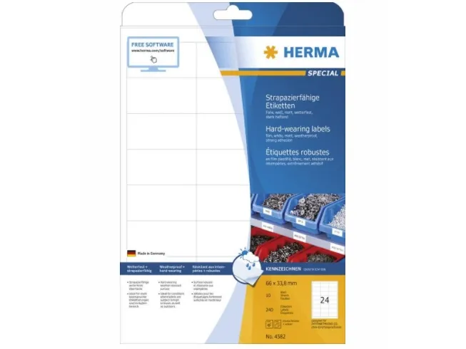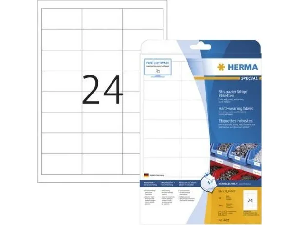 Hvit Selvklebende skriveretikett A4 Laser firkant Ja Ja 240 stykker 10 stykker