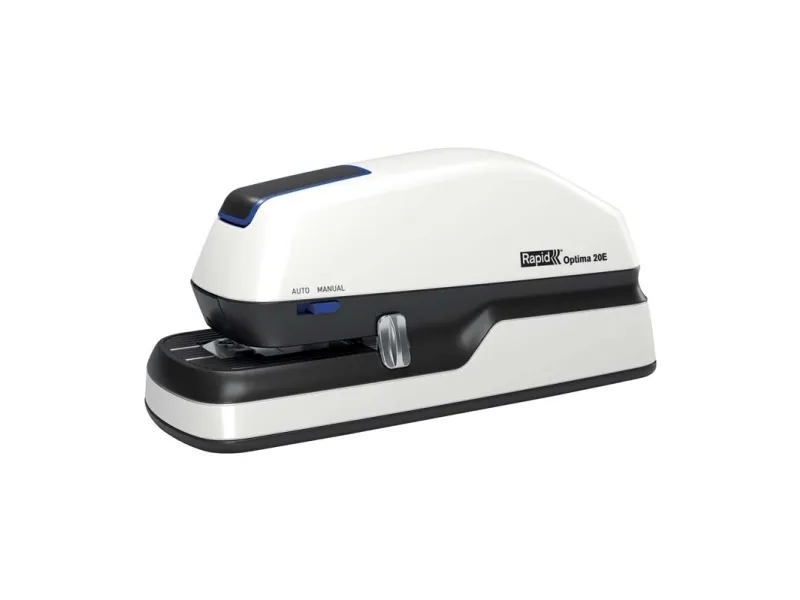 Den elektriska häftapparaten Optima 20 är ett kompakt verktyg som häftar upp till 20 ark permanent och garanterat blockeringsfritt med Optima häftklamrar. Den har en LED-indikator som visar när klamrarna håller på att ta slut, en löstagbar häftklammerborttagare och stapelhöjdsmätare. Den har 42mm gapdjup och levereras med 1 000 Rexel Optima nr 56 häftklamrar och en strömadapter. Den kan även drivas med 6 AA-batterier (inkluderas inte).
