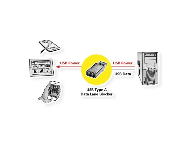 Eliminates the risk of becoming the target of attacks via foreign USB sockets and reduces the risk of malware / malicious software being transferred to the device Suitable for IT equipment in any hotel, office or public environment such as schools, museums, trade fairs or other places Ideally suited for anchor points such as airports and railway stations Does not cause conflict with the existing IT infrastructure Prevents data exchange by blocking the data lanes - only power is transmitted to your end device Safe charging without complications