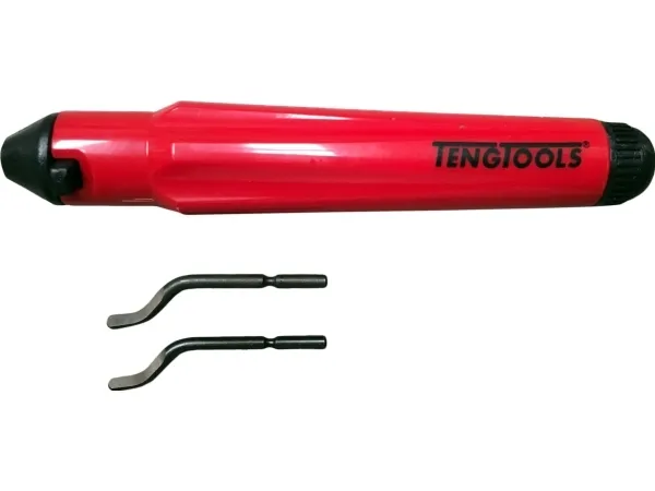 For use with different deburring operations on pipes, holes, edges etc. The HSS blade knives are swivel mounted in the handle and automatically adapt to the shape of the work piece. The tool comes supplied with 2 HSS knife blades.