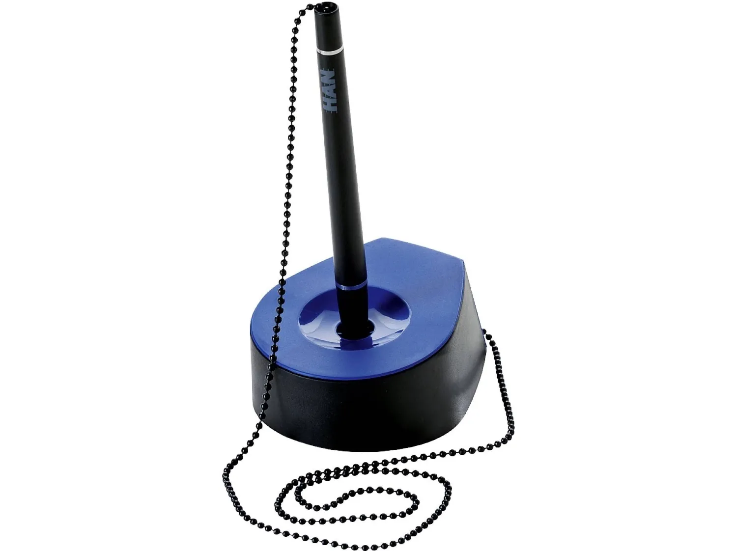 HAN kuglepenstander SALSA, sort-blå Det mondæne design udstråler tidløs elegance af de udskiftelige kvalitetstoner er dokumentægte sort (ISO 12757) design og farve er afstemt efter alle produkter i SALSA-serien , ideal for kontor og modtagelse Elegant kuglepenstander med en robust metalkæde Især venstrehåndede sætter pris på den store bevægelsesfrihed i den 68 cm lange, stærke kuglekæde Inkl. Dobbeltsidet klæbefolie for ekstra fastgørelse efter behov Stabil med en stabil og ekstra kraftig udførelse Skridsikker, møbelskånende gummifødder sørger for, at den står sikkert
