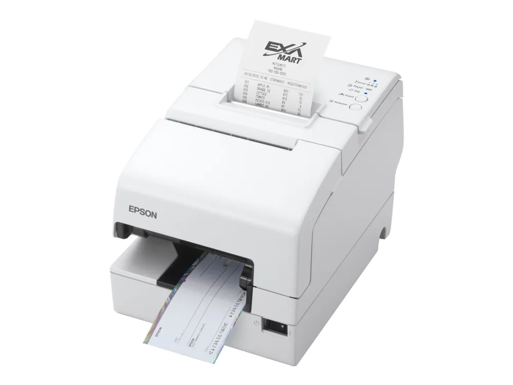 Med denne integrerte POS-skriveren kan du skrive ut kvitteringer og bilag samt behandle sjekker med én enhet. Den er pålitelig, har nyttige tilkoblingsmuligheter og tilbyr svært lave totale eierkostnader. Den er ideell for virksomheter som trenger mulighet til å behandle sjekker ved salgsstedet, og som ønsker å skrive ut kvitteringer med den samme enheten.