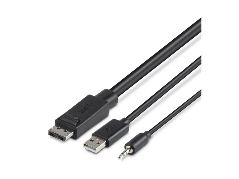 4-pins USB type A - hann Mini-phone stereo 3.5 mm - hann 20-pins DisplayPort - hann