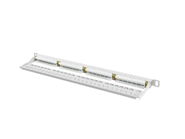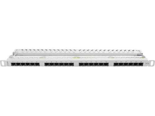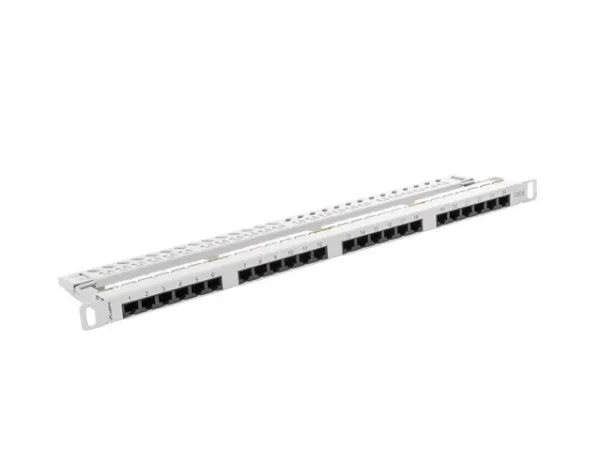 It is a passive part of structured cabling used for termination and organization of twisted-pair cables within 19" rack cabinets. Patch panels is equipped with 24 unshielded RJ-45 ports category 6.